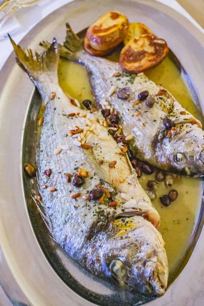 The highlight of Ligurian-style dinners, though, has to be the freshly roasted fish. Order the wild orata, a flaky yet meaty sea bass that is indigenous to the Ligurian sea. The Ligurian roast is garnished with pesto, whole toasted pine nuts and black olives, and the meat of the orata is hearty enough to absorb all of these flavors for a briny, satisfying bite.